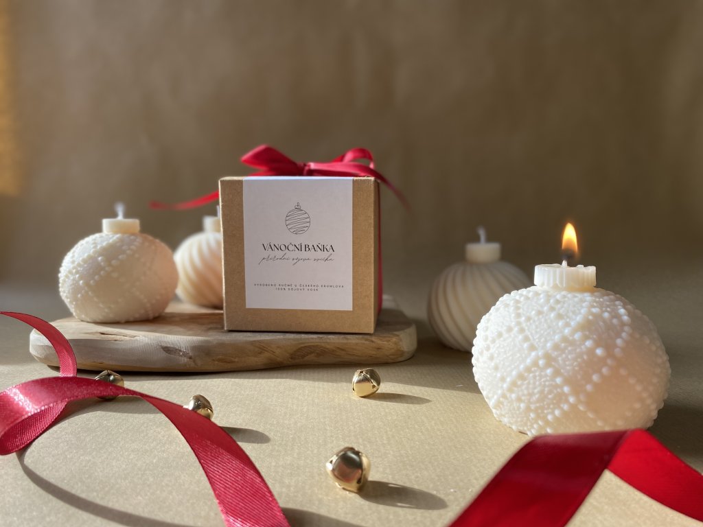 Svíčka ve tvaru vánoční baňky je originálním dárkem snad pro každého. Vypadá nádherně a ať už si ji jen umístíte do vánoční dekorace nebo si ji zapálíte během svátků, radost z ní budete mít dlouhé hodiny.